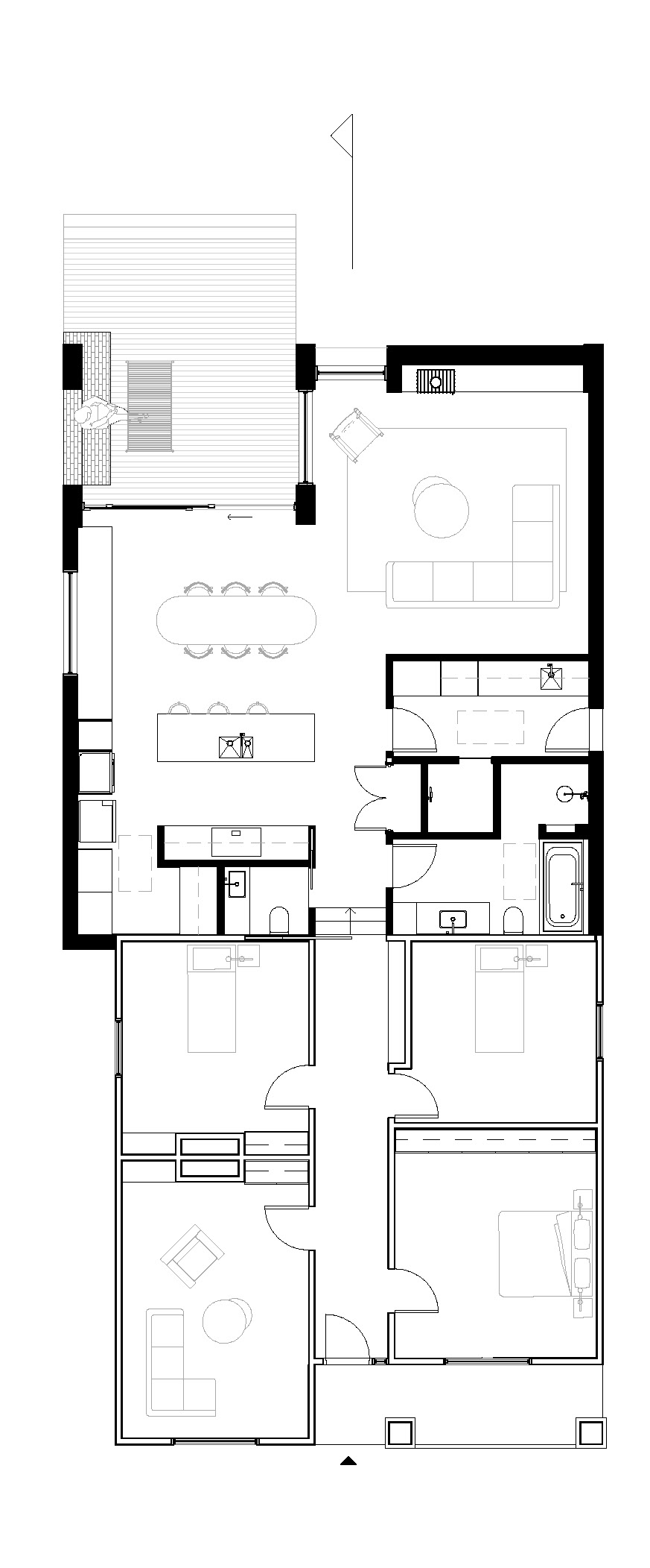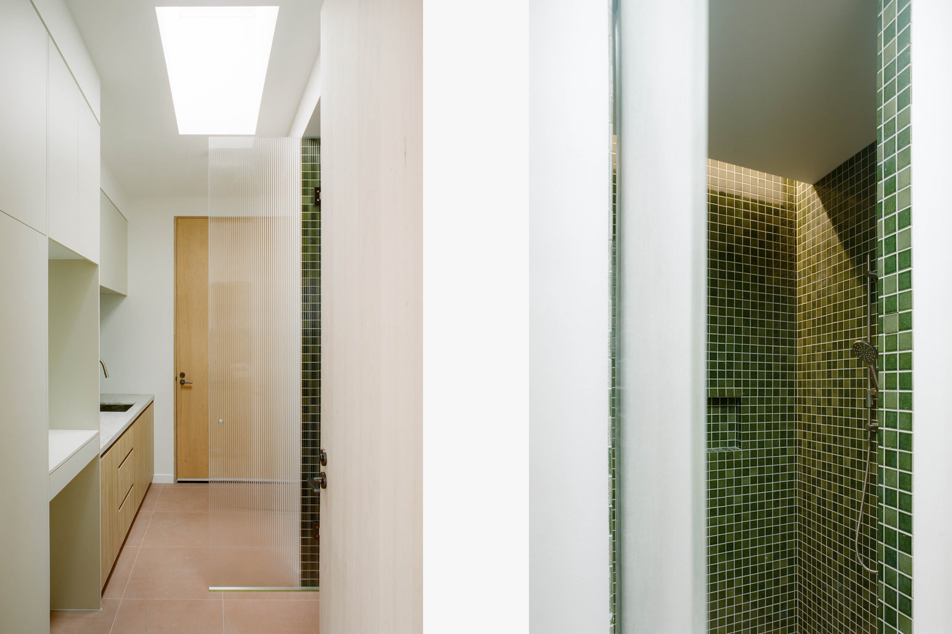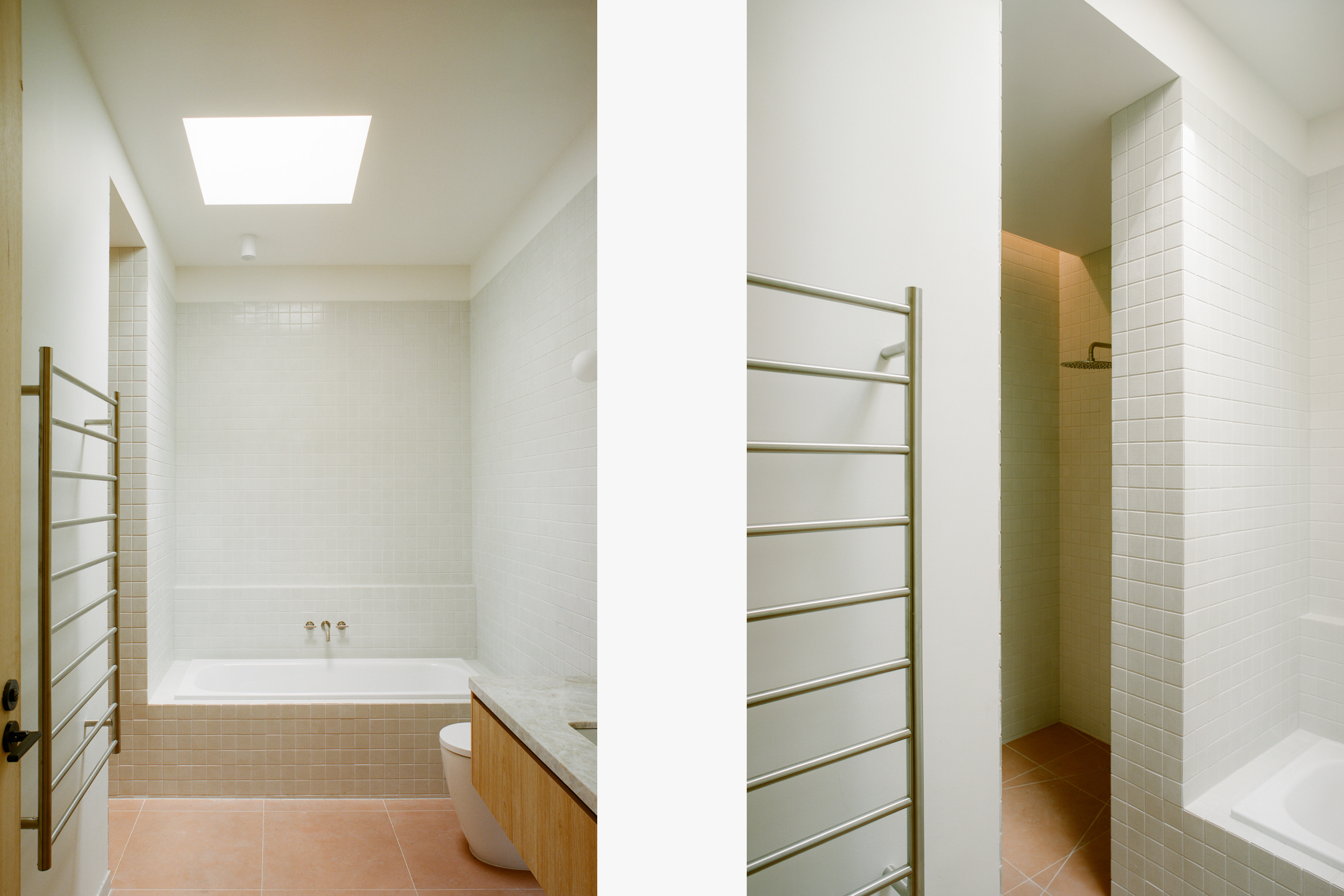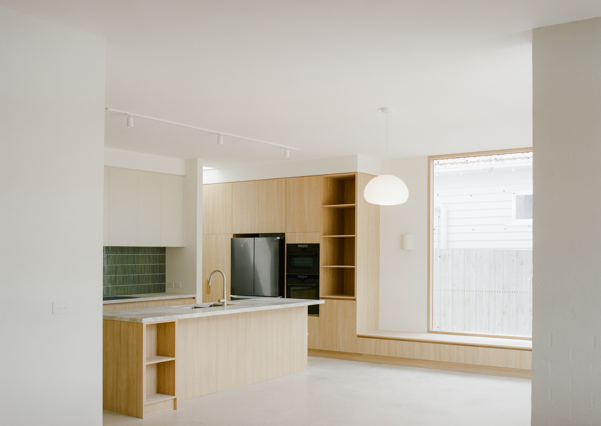 Set within a heritage overlay, neighbourhood character guided the project throughout. From the street, the original house remains largely unchanged, with the addition recessive and visually absorbed. Internally, private rooms are retained within the existing house, while communal spaces open up toward the rear. Carefully oriented openings, skylights and thermal mass bring light, warmth and privacy, while a restrained palette of brick, timber, terracotta and green tiles establishes a tactile, enduring material language.